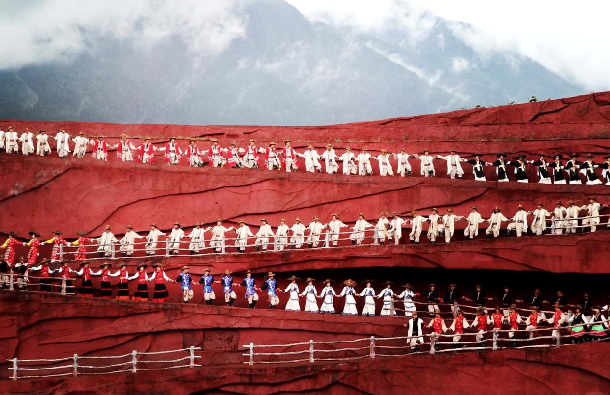 With a cast of over 500 local performers, the show draws from the ancient traditions of the Naxi, Yi, and Bai ethnic groups, showcasing everything from spirited dances to wedding rituals and labor songs. The choreography and costume design are deeply rooted in regional folklore, yet the production blends them with modern stagecraft and cinematic direction.