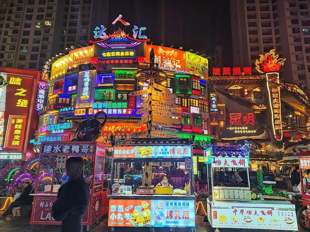 This iconic gate area sparkles at night, alive with street musicians, snack stalls, and the golden glow of Kunming’s historic arches.