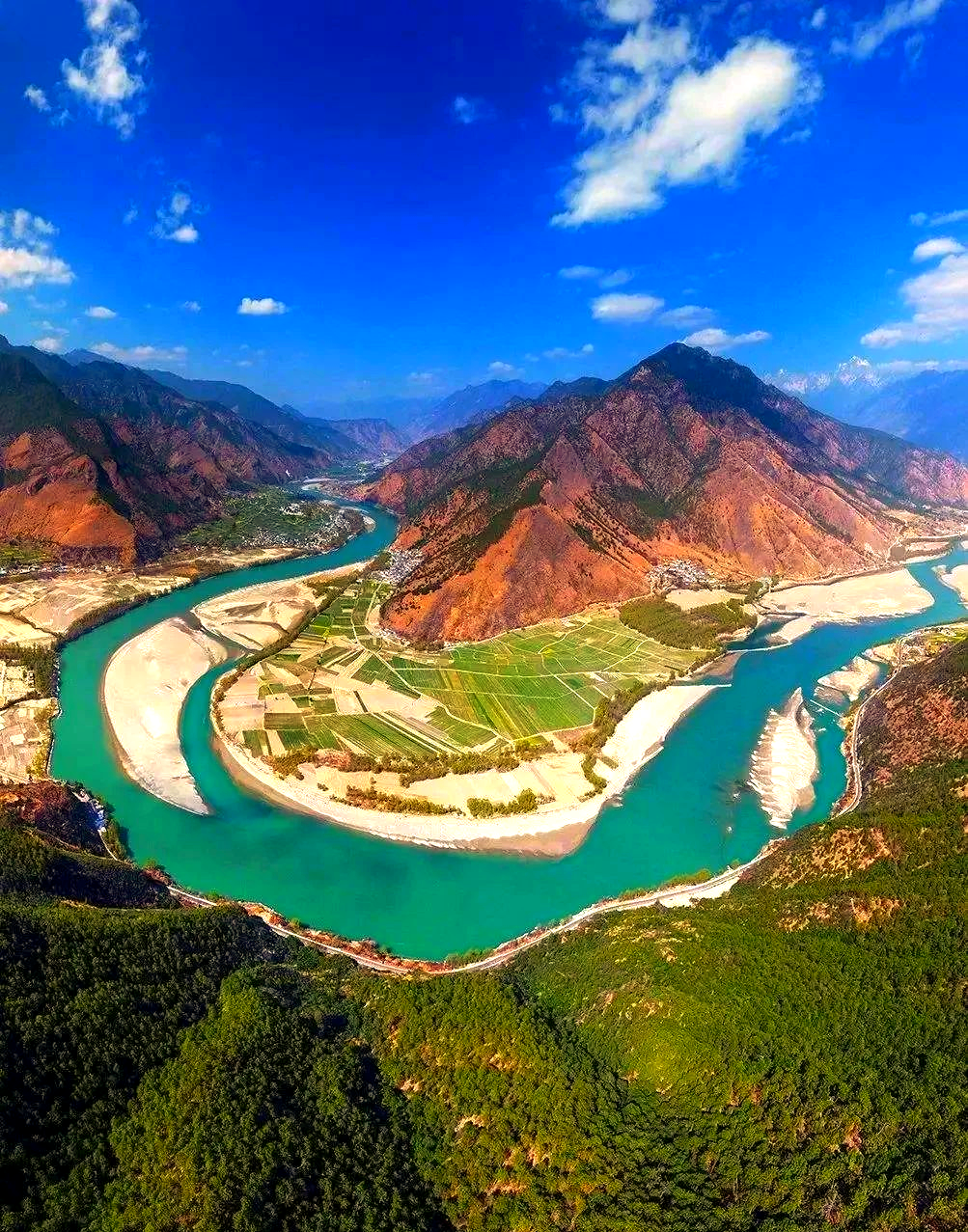 About 60 km north of Lijiang lies Tiger Leaping Gorge, one of the deepest and most dramatic gorges on earth. The Jinsha River thunders between Yulong and Haba Snow Mountains, carving walls as high as 3,900 meters (12,795 feet).